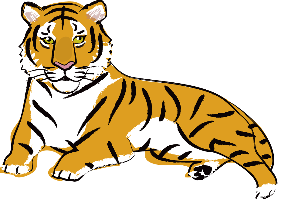 堂々たる風格、かっこいい虎のウェブ用png形式イラスト素材。926×657px